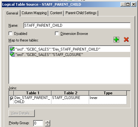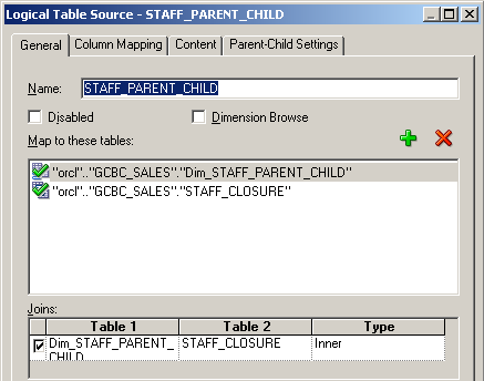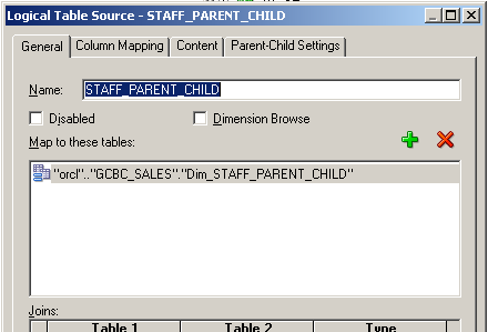 After joining these 3 tables in the physical layer, in the Dimension LTS of the Staff dimension, ensure that the closure table join is brought in as well. Also include a column from the Closure table into the Logical Dimension(primarily to avoid a warning in the repository).