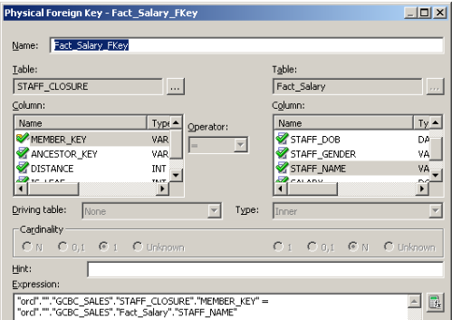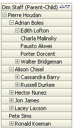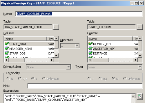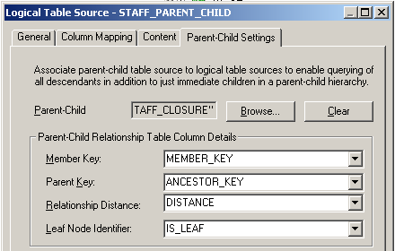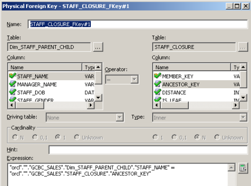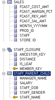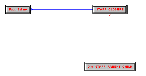 In this case, only one step is required. We need to create a Staff dimension and then add a Closure table to the Parent-Child Hierarchy. Remember there are no physically defined joins between the Closure and the Parent-Child tables.