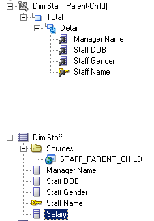 Salary is defined as being part of the Logical Dimension itself. If we now do the reporting on the Parent-Child Hierarchy and Salary, we should now be able to see Salary as an attribute