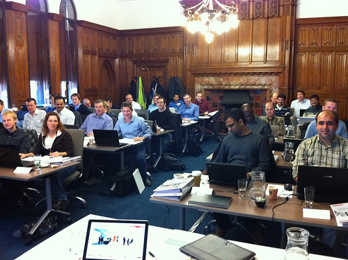 The idea for the event was for the some of the Rittman Mead consulting team to present three days of new material around OBIEE 11g, focusing on product architecture, the install, creating the repository, creating reports and the new maps and KPI scorecards, through to Essbase integration and clustering/HA. Here's a photo of the delegates at the start of one of the sessions: