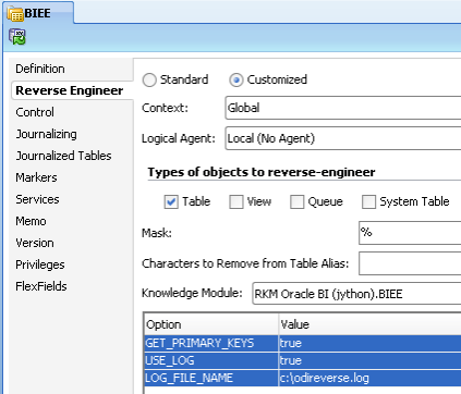 As you see we now have pre-defined knowledge modules to extract data from Oracle BI and then load it into multiple targets. Lets now define a model and then reverse the metadata using the RKM Oracle BI (jython)