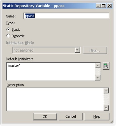 - Next, go the connection pool in the rpd and replace the user and the password with the static variables. Replace the user name with