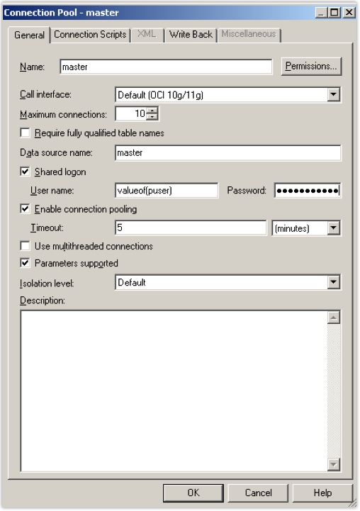 843F794309A82CF208A690AD0045D3DCE7CCEEA3B72F 137949B8C699489A5D548D7D5F4828ADB4071CCB22E7FEECBCE71592C1AC13E3" timeout="300" maxConnDiff="10" maxConn="10" dataSource="master" type="Default" reqQualifedTableName="false" isSharedLogin="true" isConcurrentQueriesInConnection="false" isCloseAfterEveryRequest="false" outputType="xml" bulkInsertBufferSize="131072" tempTablePrefix="TT" transactionBoundary="1000" xmlaUseSession="false" isSiebelJDBSecured="false"><Description></Description></ConnectionPool>