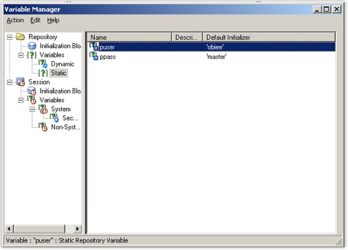 - Go back to the original copy of the RPD, open it and select Manage > Variables from the application menu.