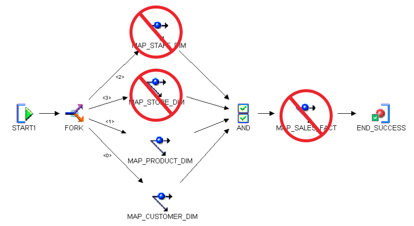 When using ETL processing to "instantiate" our logical model into the physical world, we can't abandon our Agile imperatives: we must still deliver the new content, and corresponding rework, within a single iteration. So whether the end user is opening the user story because the data quality is abysmal, or because the performance is just not good enough, we must vow to deliver the ETL Iteration time-boxed, in exactly the same manner that we delivered the Model-Driven Iteration. So, if we imagine that our user opens a story about data quality in our Customer and Product dimensions, and we decide that all we have time for in this iteration are those two dimension tables, does it make sense for us to deliver those items in a vacuum? With the image below depicting the process flow for an entire subject area, can we deliver it piecemeal instead of all at once?