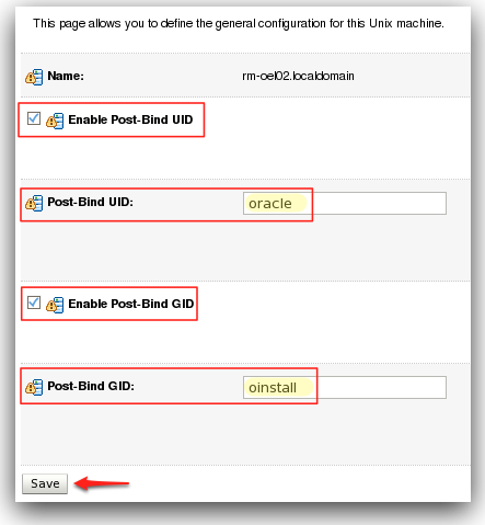 Now, tick the two items Enable Post-Bind UID and Enable Post-Bind GID.