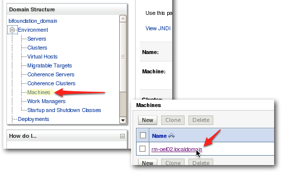 Still logged into Web Logic Admin Console, with the above Listen Port change pending, click on the Machines link under Environment in the Domain Structure menu. Click on your server name.