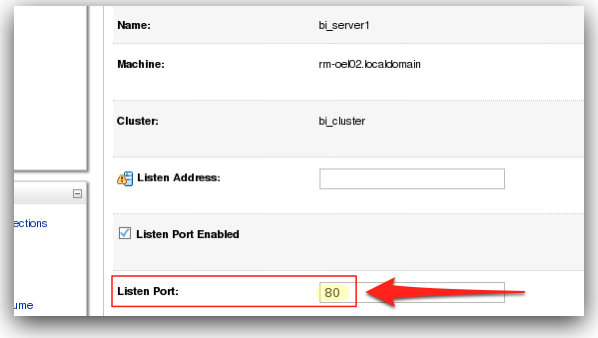 The configuration changes are actually very simple. They are just within Web Logic Server, we don't touch the BI components at all.We change the Listen Port property of the Server to port 80.