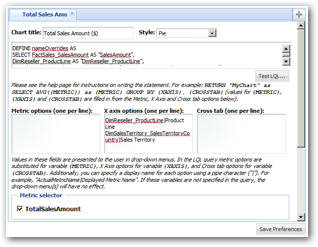 Then, you'd start adding visual components such as word clouds, record lists, metrics bars and so on to the main part of the screen. In the example below, we're using LQL, the Latitude Query Language, to define the query for a chart component: