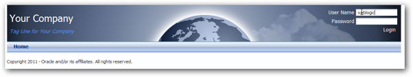 Then, after stepping through a few wizard pages, you end up with a basic ADF application that uses the Portal : Framework component set to provide user login, page tabs, page templates and so forth. Once you deploy this application to the built-in Oracle WebLogic application server for testing, you can see the initial application, log in and test it.