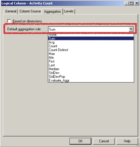 Once we have the new "fake" measure, we can set the aggregation rule, in this case SUM: