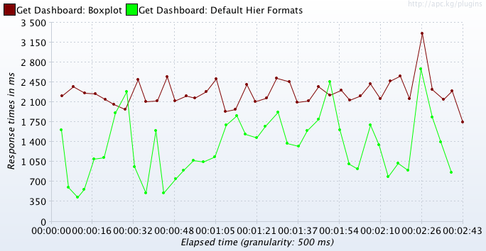 Depending on your testing method, how you capture response time will be different. Always capture the raw response time and test duration offset - don’t just record one aggregate figure for the whole test. Working in BI you hopefully are clear on the fact that you can always aggregate data up, but can’t break a figure down if you don’t have the base data.JMeter has “Sample time” or “Response Time”. Use the setSampleLabel trick to make sure you get a response time per specific dashboard, not just per dashboard refresh call. Some useful listeners to try out include: