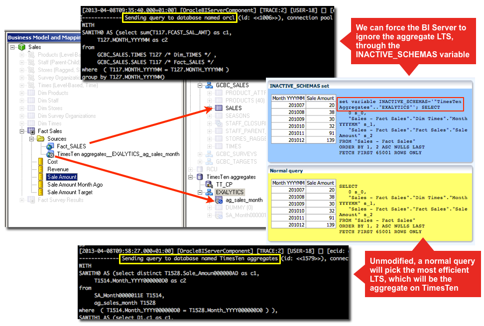 nqquery.log, extract the fullpopulatestatement for each aggregate (fact and associated dimensions) - Amend the INACTIVE_SCHEMAS setting into the