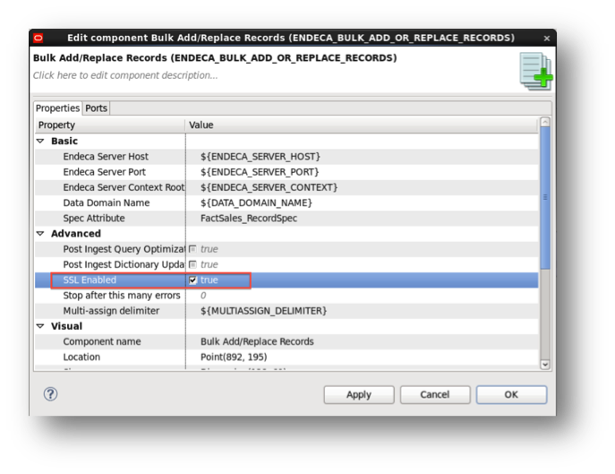 For a BULK ADD/REPLACE component it is enough to check SSL Enabled option.