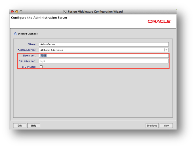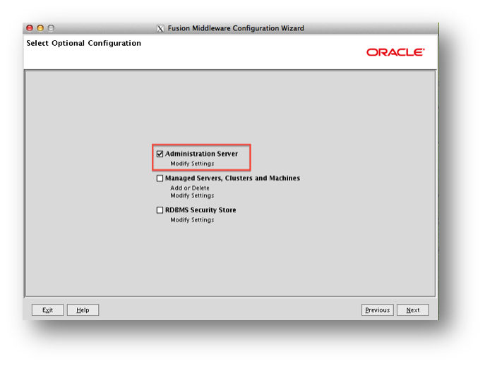 All Weblogic domains will need to be ‘SSL enabled’ and the secure port should be defined. This can be done as one of the steps in the ‘Fusion Middleware configuration Wizard’. To see the setting select the ‘Administrator Server’ from the list, as shown in the screenshot below, when you reach this option point.