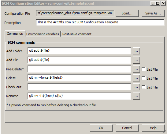 The scm-conf-git.template.xml file specified above is a custom configuration file, as OBIEE only ships with support for Subversion and something called ADE (which I've been told is the version control system that Oracle uses internally). So we don't get Git support (pardon the pun) right out of the box?