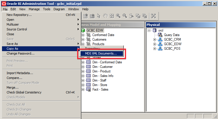 We can use MDS XML by creating a brand new metadata repository specifying XML from the beginning, or converting an existing binary RPD to XML using Copy As|Save As in the Admin Tool: