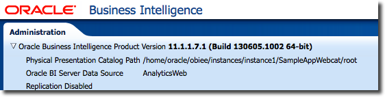 - Start up Admin Server, Managed Server, and OPMN. Login to OBIEE and check the new version: