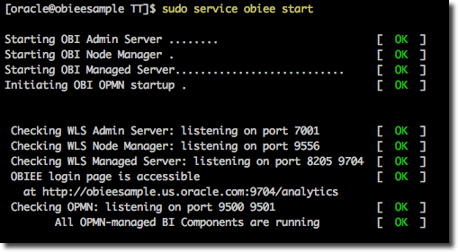 The difference between this script and others is that instead of just looking for a running service, or polling a log file for a particular string, it looks at the processes, the network ports, each of the opmn-managed processes, and even whether /analytics is accessible.