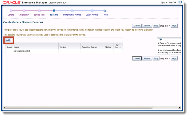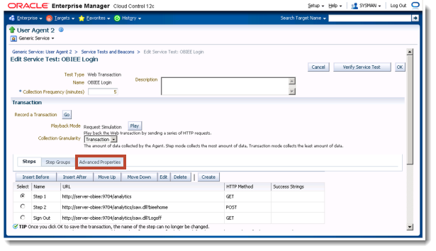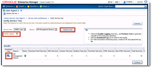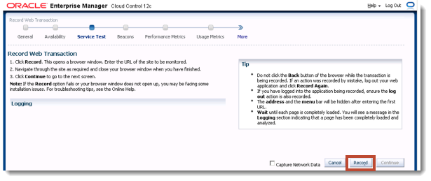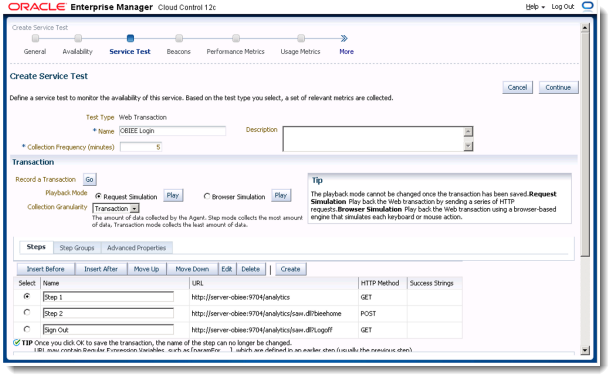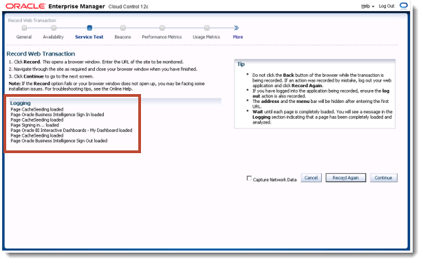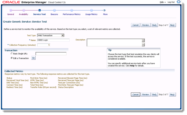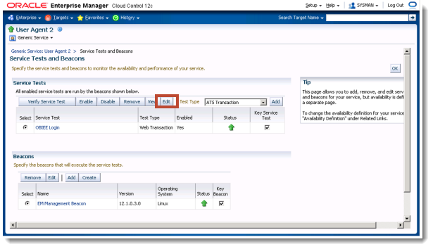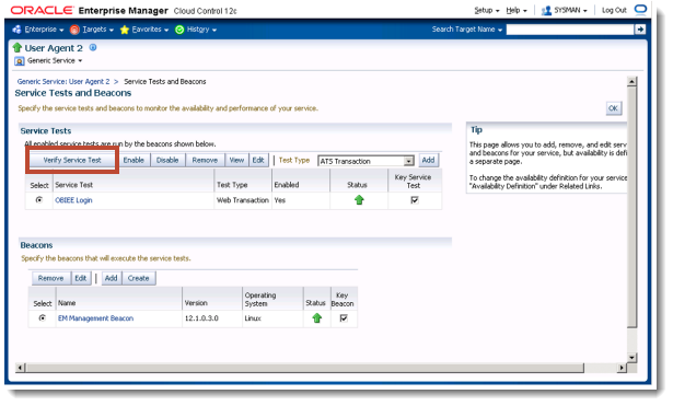 Oracle Enterprise Manager 12c Web Transaction Service Beacon