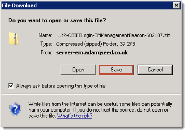 After connecting OBIEE to EM12c (as per Marks post), you can now add a Service Beacon to perform the aforementioned simulation. There is however a requirement to use Internet Explorer in order to record the user interaction, these are referred to as Web Transactions; I used Internet Explorer 8 but more on this later.