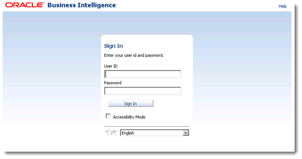 In this window enter the URL for OBIEE into the URL bar, and press Enter. You should then see the standard OBIEE login page, as shown below.