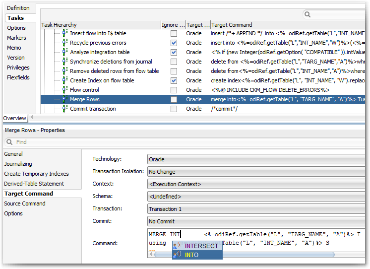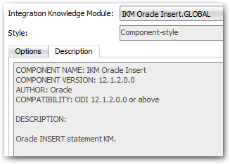 Component Knowledge ModulesNext to the standard KMs - now called Template KMs -, a new type of knowledge modules has been introduced in this release. Going one step further in the reusability, the Component KMs contain steps that are defined once and shared among several of them. Instead of being templates of code with some call to the Susbtitution API at runtime , these KMs are actually compiled libraries that will generate the code based on the components present in a mapping.