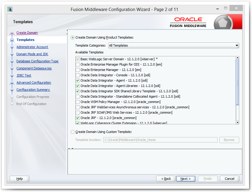 Practically the standalone agent is now installed outside of the ODI installation, in a domain similar to WLS domains. The benefits of it, apart from the centralised management, is that it supports Weblogic Scripting Tool (WLST) and can be monitored through Enterprise Manage Fusion Middleware Control or Enterprise Manager Cloud Control. The standalone agent can be launched manually or through the Node Manager.