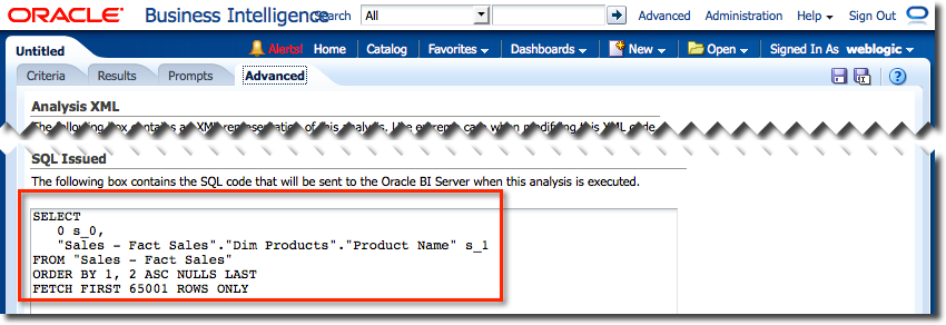 You can also generate Logical SQL directly from an analysis in the catalog using runcat.sh - see later in this post for details.