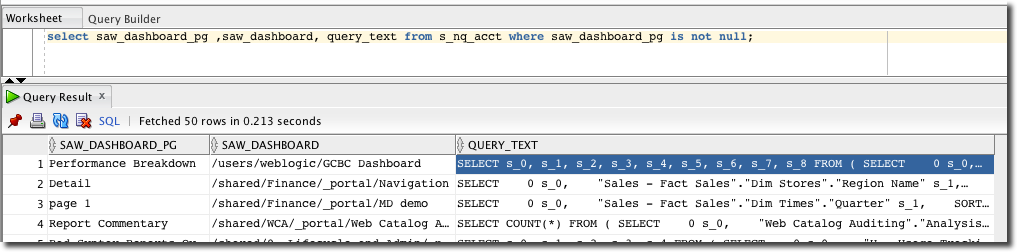 SELECT QUERY_TEXT FROM S_NQ_ACCT WHERE START_TS > SYSDATE - 7