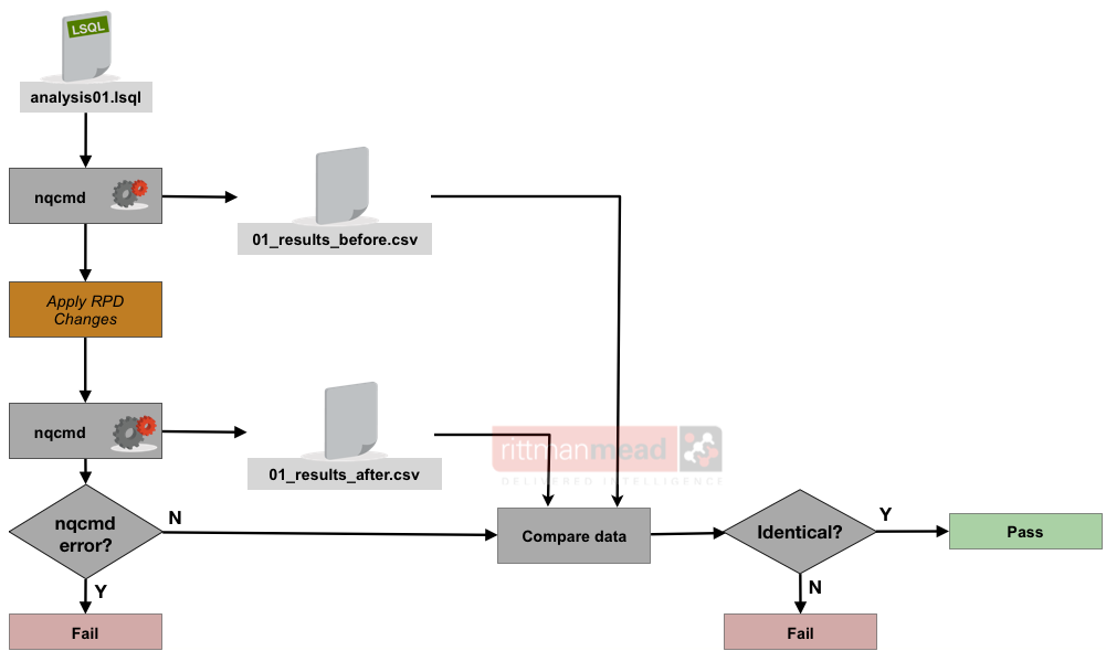 Once you’ve run the initial data sample, make your RPD changes, and then rerun the data collection with the same command as before (except to a different output file). If the nqcmd command fails then it’s an indication that your RPD has failed regression testing already (because it means that the actual analysis will presumably also fail).