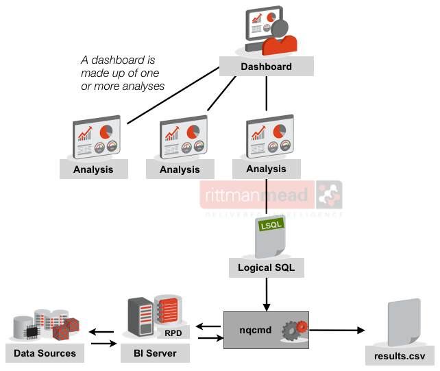 So if we focus on regression testing the impact that changes to the RPD have on the data alone then the available methods become clearer and easier. We can take the Logical SQL alone that Presentation Services generates for an analysis and sends to the BI Server, and we can run it directly against the BI Server ourselves to get the resulting [logical] dataset. This can be done using any ODBC or JDBC client, such as nqcmd (which is supplied with OBIEE at installation).