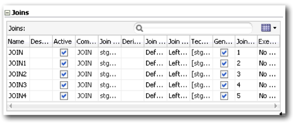 For the initial load, the SQL Control Append IKM was used and for the most part, this KM worked well without customisation. However, one of the early issues encountered during execution was with unordered outer joins - this appears to be a an issue with the PostGresQL technology. This was resolved by amending the mapping and setting an order for the joins: