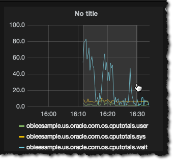 From here you can add additional metrics to the graph, or add graphite functions to the existing metric. I described the use of functions in my previous post about OBIEE and Graphite - Click on Back to Dashboard at the top of the screen, to see your new graph in place. You can add rows to the dashboard, resize graphs, and add new ones. One of the really nice things you can do with Grafana is drag to zoom a graph, updating the time window shown for the whole page: