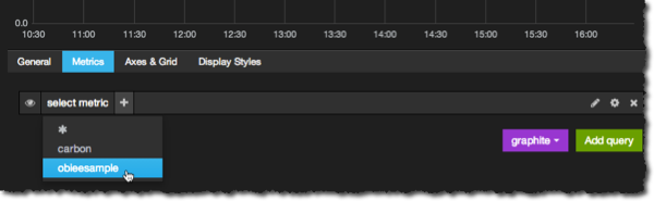 It’s a great way to very rapidly develop and explore dashbaords of data sourced from Graphite. It’s easy to install too. Using SampleApp as an example, setup per the obi-metrics-agent example, do the following: