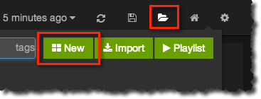 - Click on the Open icon and then New to create a new dashboard