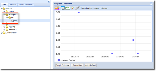 Tip: if you don’t see your data coming through, check out the logs in ~/graphite/storage/log/carbon-cache/carbon-cache-a/ (assuming you have Graphite installed in ~/graphite)