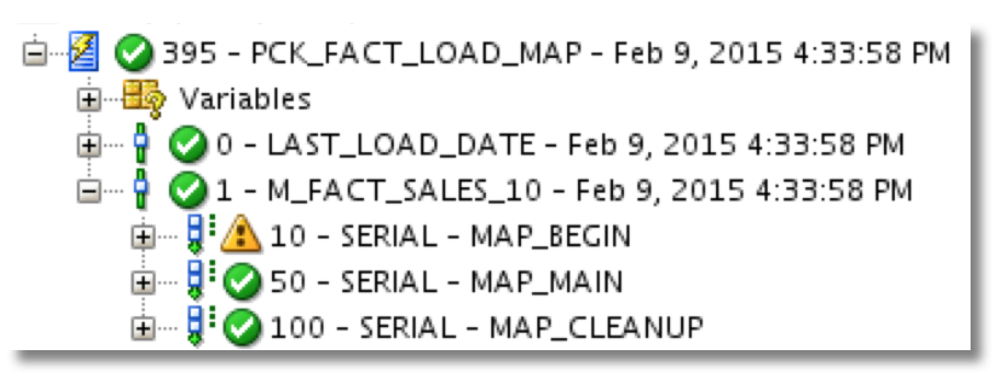 In this example the mapping M_FACT_SALES_10 is directly executed within the package, in the same session. This means that the value of the variables will be the same as the ones in the package.