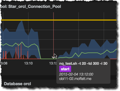 Another very nice feature of Grafana is Annotations. These are overlays on each graph at a given point in time to provide additional context to the data. How I use it is when analysing test data to be able to see what script I ran when: