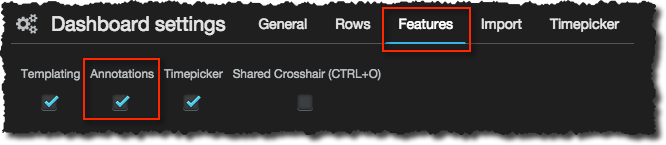 Now in Grafana enable Annotations for the dashboard (via the cog in the top-right corner)