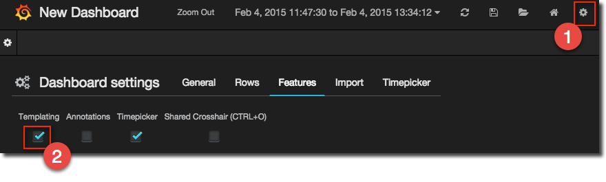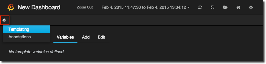 To create a template you first need to enable it per dashboard, using the cog icon in the top-right of the dashboard: