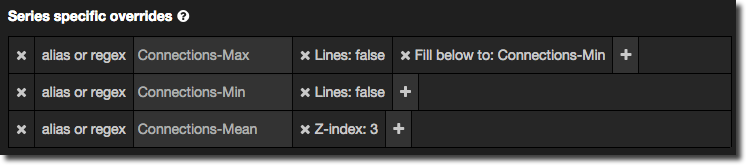 You’ll notice that Grafana automagically adds in a second rule to disable lines for the minimum series, as well as on the existing maximum series rule.