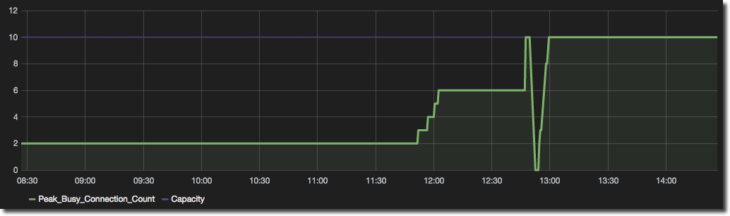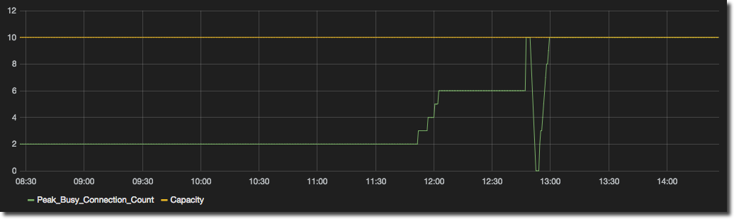 For example in this graph we can see the number of busy connections and the available capacity:
