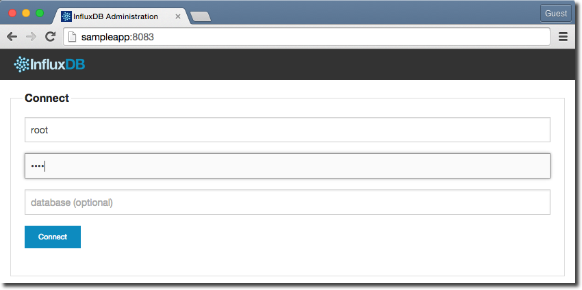 If you now go to http://localhost:8083/ (replace localhost with the hostname of the server on which you’ve installed InfluxDB), you’ll get the InfluxDB web interface. It’s fairly rudimentary, but suffices just fine: