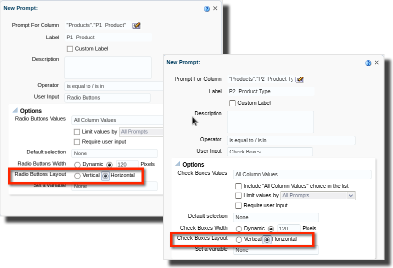 Horizontal Layout for Radio Button and Check Box Dashboard Prompts