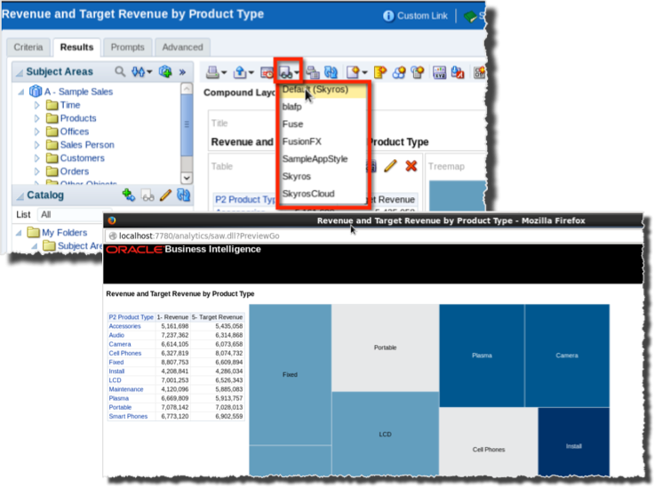When you want to preview an analysis in the Results tab, instead of showing immediately how the analysis will look, OBIEE offers you different Styles to see your analysis. These feature was also included since the 11.1.1.7.10 version. In case you want to create a custom style, Oracle recommends to use the new Skyros style as a starting point.