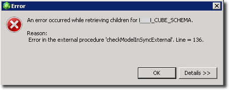 Error in the external procedure 'checkModelInSyncExternal'. Line = 136.