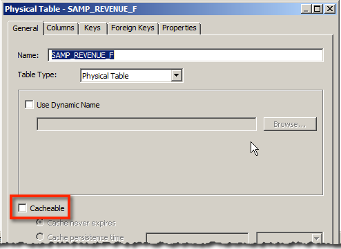 - In the Physical table, setting Cache persistence time. Why not? Because this time period starts from when the data was loaded into the cache, not when the data was loaded into your database.