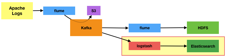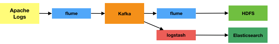 - From Kafka the web server logs are available to stream, as if natively from the web server disk itself, through Flume and Logstash.