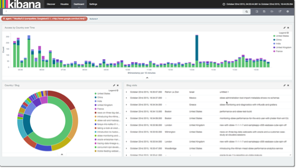 And of course, the whole point of streaming the data into Elasticsearch in the first place – easy analytics through Kibana: